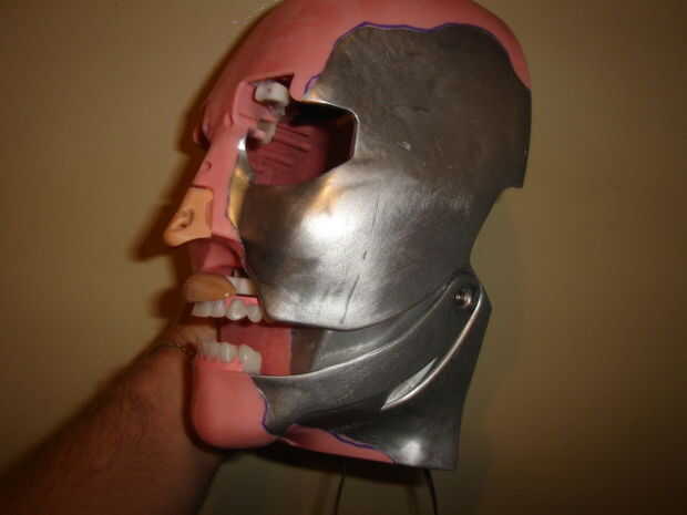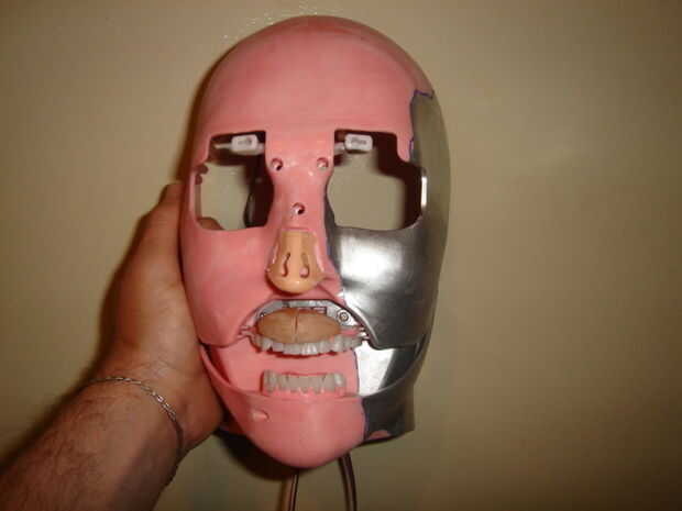 Una vez es completa y esta seco, retire la cinta teniendo cuidado de no quitar la pintura de la cabeza. Después la cinta quité su cabeza debería verse como esto después de volver a poner la mandíbula.