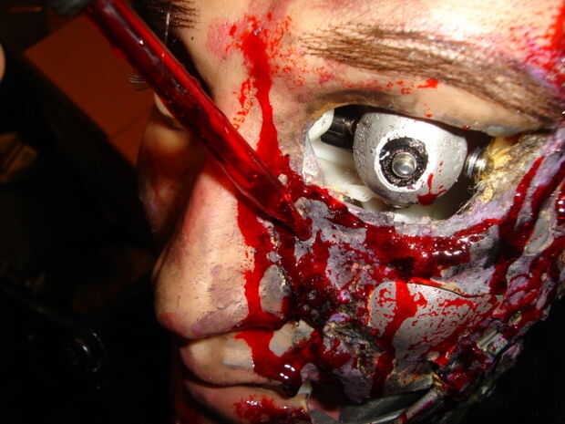 A continuación añadimos fase de gel de sangre a su uso de cara un gotero para agregar la sangre. Después deje secar durante 2 a 3 días, sé que no será completamente seca y nunca será pero recubrirá con vinilo caliente vierta.