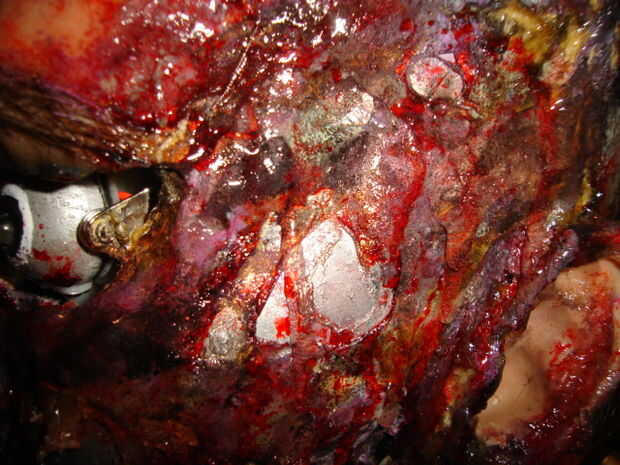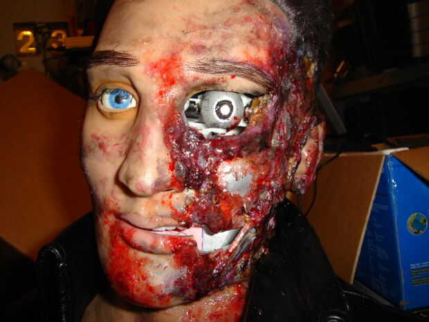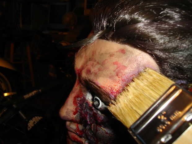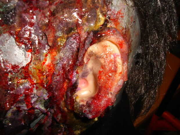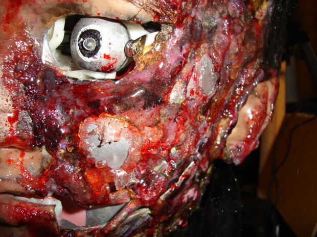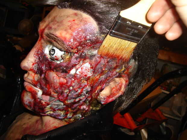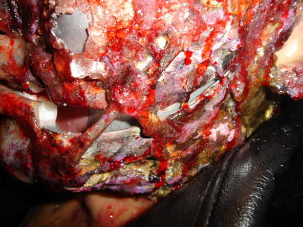 Mezclar el vinilo vierte caliente y viértalo en un plato pequeño que usted puede lanzar lejos. Muy lentamente calor a 375 grados F o unidad resulta evidente, ahora dejar calentar hasta sólo un color marrón claro y corte el calor rápido. Asegúrese de que usted no consigue esto en la piel quema rápido. Usar un cepillo desechable y aplicarlo en toda la parte quemada de la piel incluso en el pistón de la mordaza si quieres porque se tire lejos después de que el pistón se desplaza. Que este seco 1 día y después de aplique una pequeña cantidad de talco en la cara para eliminar el brillo y la adherencia del vinilo. Felicidades listo con los efectos del efecto Elvinator.