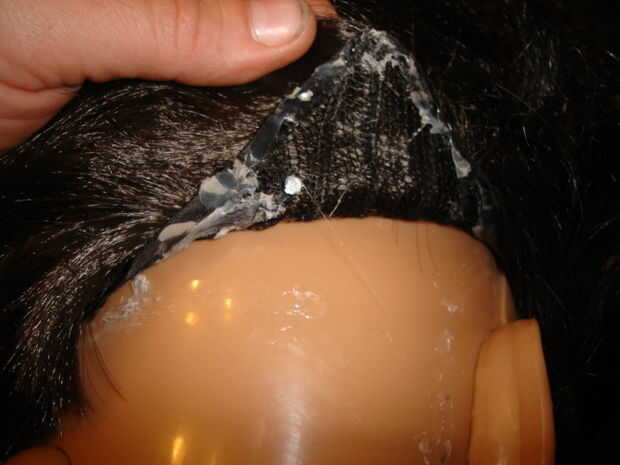 Ahora, es momento de retirar la piel. Esta parte es uno de los pasos más lentos. En primer lugar, no utilice una cuchilla de afeitar. En su lugar, utilice el destornillador plano. Esto evitará cualquier errores; potencialmente podría cortar la piel del robot a la mitad. Empezaremos quitando la peluca. La peluca es caliente-pegado a la cabeza hasta el punto donde alcanza la piel luego se cose en. Por detrás, simplemente tire de la peluca a la piel a ambos lados.