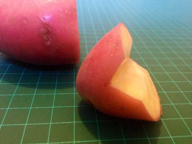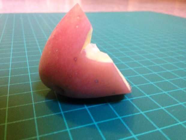 2. recorte de la parte húmeda de la papa, para que coincida con la forma de su área de heridos. (Fig. 2, 3)