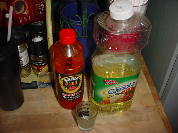 una botella de salsa picante, tabassco o a alguno que está en tu nevera