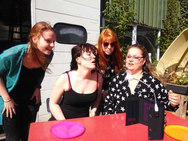 ..... "Chicas Chicas vienen en el sobre! Es agradables y frescos aquí gracias al alivio solar de los paneles solares USB"...