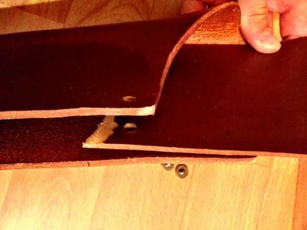 Si no has hecho ya, encolar y clavar los lazos de la correa.