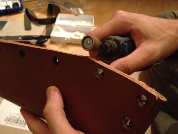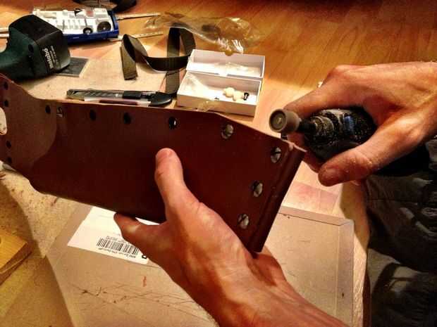 Tome un cortador y corte todo el material excesivo por el lado de la aljaba. Cortando un poco de ambas capas le dará una ventaja agradable. Después de eso solía la herramienta lijadora Dremel liso donde fallé con la herramienta de corte. Esto producirá polvo repugnante de la piel. Use una máscara o hacerlo al aire libre. No es que lo hice en la sala de estar. No realmente. No todos de la misma. Tal vez.