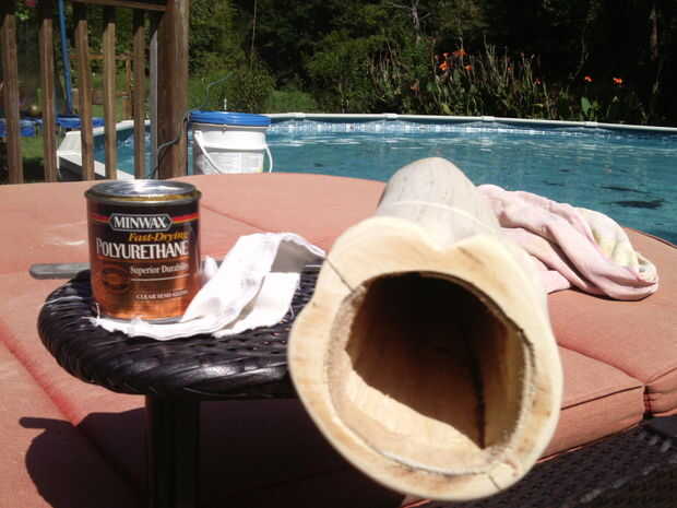 Decidí poner un final claro de la madera. En mi opinión, el cedro se ve mejor natural. Tres capas de acabado, con lijado fino entre capas, era finished(pic3).  Ahora podemos dejar de llamar a esta cosa un registro y llamarlo un carcaj de uno de la misma clase. Ahora es el momento para personalizar el carcaj. (página siguiente)  Se puede casi garantizar que nadie más tendrá uno de estos.  Mirando hacia atrás, usted también puede usar este tronco hueco para otra cosa como una pajarera o una jardinera.