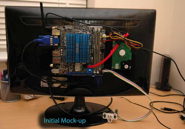 Mientras navega por internet una posible solución, me encontré con un artículo (estructura) de un AIO DIY (no puede encontrar el enlace lo siento!) donde el autor utiliza una placa base de ASUS AT3IOn deluxe y atornilla todo en la parte posterior del monitor. Utiliza como fuente de inspiración, establecer sobre reuniendo los componentes necesarios mientras mi auto un estricto presupuesto de £200. Para ello que tendría que buscar partes que pude de la laptop y todo lo que yo tenía por ahí.