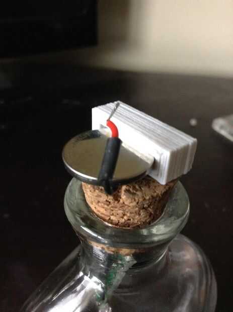 Suelde el cable negativo de la batería con el conector pequeño en 4 (tierra) y caliente pegamento la cr2032 batería para el corcho. Luego soldar el cable positivo de la batería al pin en el diminuto 8 (voltaje en)