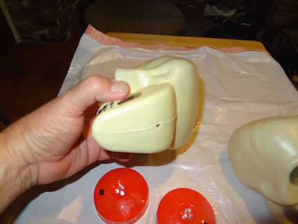 Tomar cráneo plástico suave y cortar un pequeño agujero con una cuchilla afilada en la parte inferior de la cabeza.