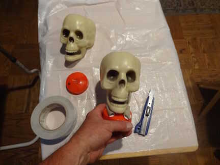 Paso 1: materialesCráneos de tienda de dólarPintura en aerosol-Utiliza la pintura "martillada" de Walmart-rojo-negroPeriódico - paños baratosPaso 2: pintura empecé con golpear los cráneos con la pintura negra de lejos por lo que sólo consigue sa