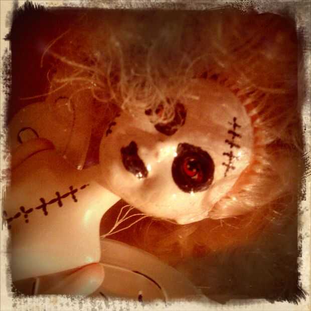 Dibujar círculos negros alrededor de sus ojos (que ya vienen con escalofriantes ojos rojos)