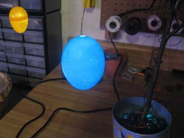 Todo lo que tenemos que hacer para conseguir el LED en el huevo se pega en el agujero, luego asegure con pegamento. Prefiero pegamento (pegamento), pero cualquier pegamento va a hacer.