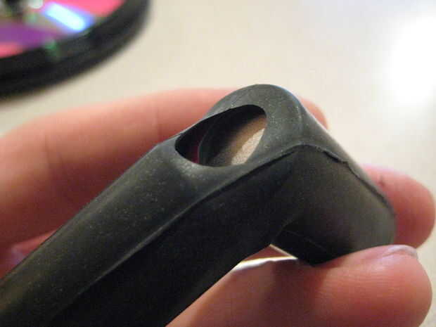 Utilice un cuchillo afilado hacer un corte pequeño en la goma entre las dos células (Fig. 2) trate de no tocar los contactos. Sólo es necesario un pequeño corte. Doble las dos baterías alejados uno del otro y la goma se dividirá aparte lo que le permite eliminar las células.