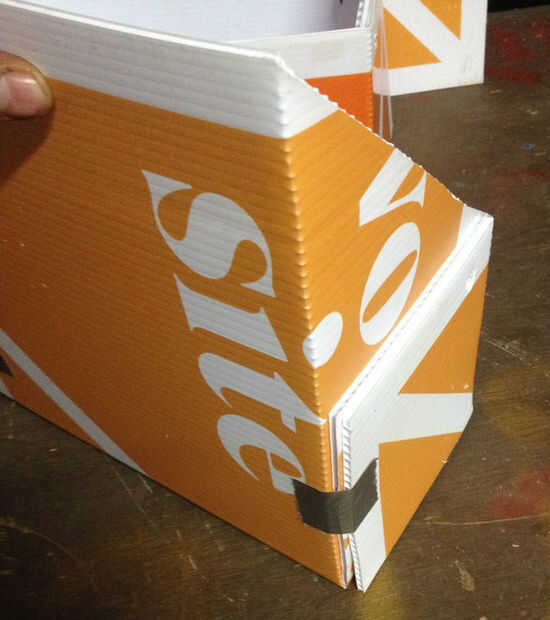1. Doble el coroplast y poner un trozo de cinta adhesiva para sostenerlo en lugar.