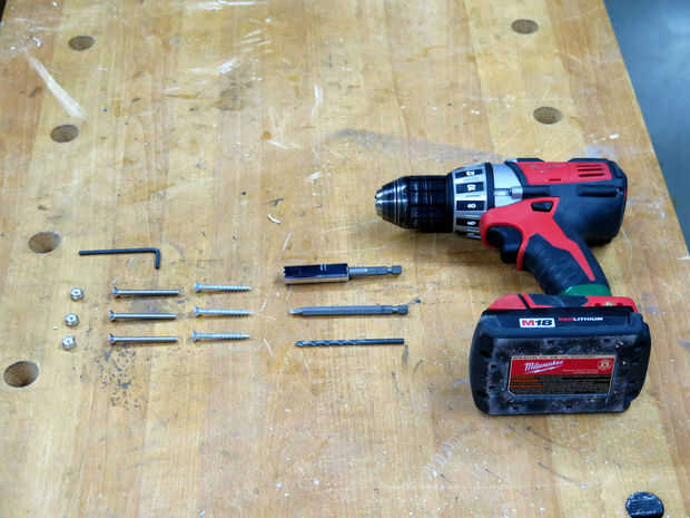 • Taladro manual o taladro, pedacitos de taladro. Deberá perforar agujeros para los tornillos y bolsillos avellanados de las cabezas de los tornillos y tuercas.
