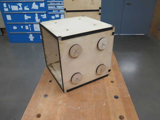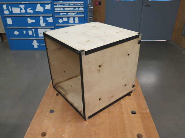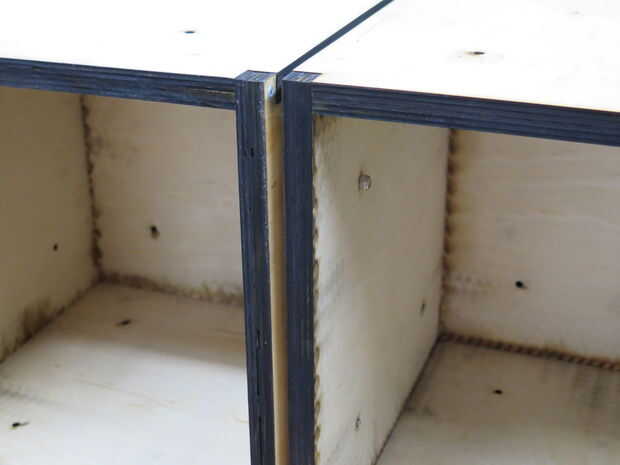 Una vez que tienes un par de cajas, inserte los tornillos con los separadores madera de 1/4" en una caja, luego empuje los tornillos a través de otro cuadro y apriételos con las tuercas de sujeción.