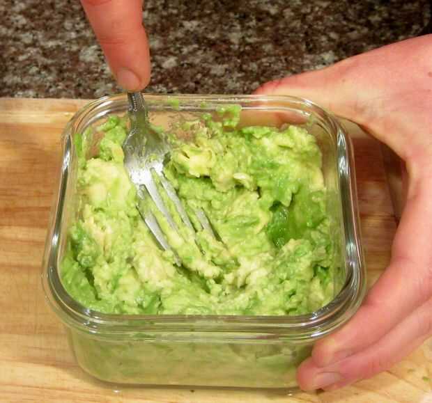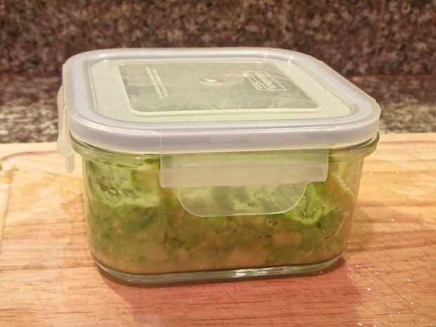 También puede guardar el puré los aguacates en una bolsa ziplock para reducir la cantidad de aire mientras se almacenan. Prefiero el método de tupperware porque más tarde duplica como mi recipiente de guacamole.