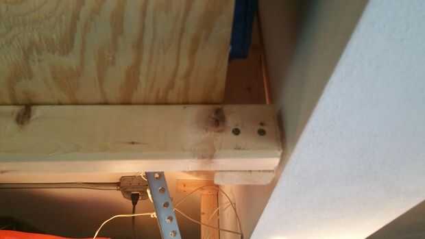 Una vez que usted apoya a los tacos cortar tus piezas de soporte inferior. Utilicé dos hojas completa 4 x 8 de madera contrachapada para mi trasero así que todo lo hice fue medir mis piezas para que fueran lo suficientemente largos para unir a los soportes hacia abajo y no obstruir la madera contrachapada. Otra vez usé 2 tornillos cada vez que conecte cualquiera de los soportes de la parte inferior, 3 pulgadas de largo.