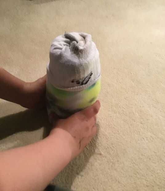 Este paso neto requiere que tire los calcetines sobre la camisa para crear un paquete de poco agradable. Si los calcetines son visto de adentro hacia fuera estás correcto si no, sus calcetines eran revés en primer lugar.