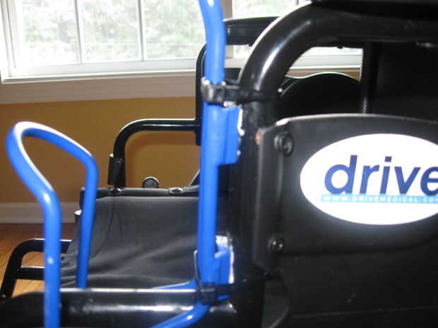 Desde la silla de ruedas fue alquilado no podía fijar las modificaciones más permanentes, además de un accesorio permanente de la canasta de montaje posterior habría prestado la silla no se puede doblar. Después de coser ella algún cojín de tush y agregar una manera para que ella tote su botella de agua, era tiempo para averiguar cómo conectar una caja de leche en la parte posterior de la silla.