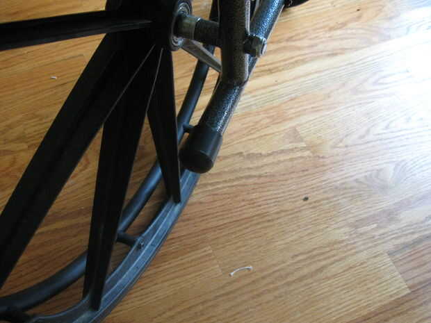 el viejo cajón de leche "Adquirido" era un poco demasiado estrecho para descansar encima de los talones de la patada a la silla. Después de quitar los topes de goma en la patada botánica, me encontré con los agujeros pretaladrados.