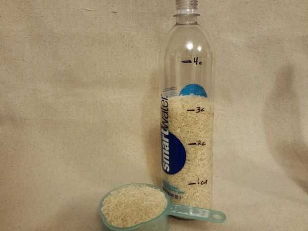 Si requiere medidas super exactas, usar agua para marcar apagado cada botella en la línea de 1 taza. Llenar y marcar la botella a intervalos de 1 taza en la parte superior. Esto le permitirá medir su mercancía seca por lo que necesita y cuando es vacío, la botella también puede medir otros bienes o agua.