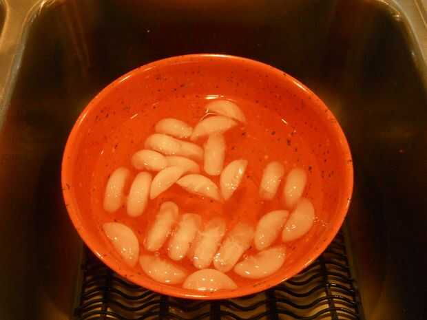 Llene un recipiente aparte con agua fría. Añadir cubitos de hielo para enfriarlas.
