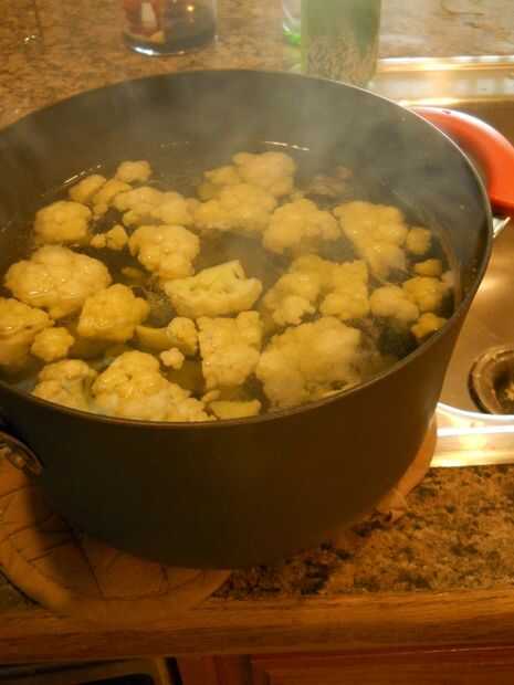 La coliflor debe empapar en el baño de hielo hasta que ha enfriado.