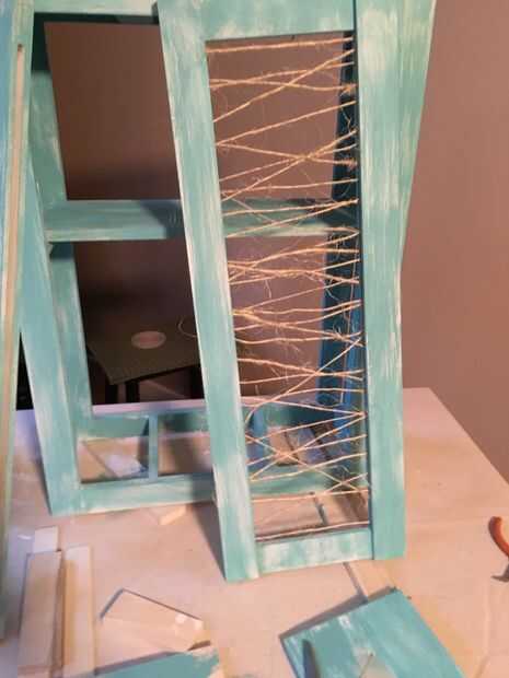 Antes de colocar las puertas, lazo de la cuerda a través de los tacos. He encontrado que añadir alguna cinta hasta el final de la cuerda es muy útil, que actúa como una aguja de coser de tipo. Sólo atar primero en alguno de los tacos y tire a través de lado a lado. Este paso toma un tiempo y puede ser que pica.