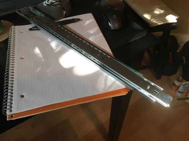 Diapositiva del cajón - lo mejor para esto es montaje debajo del centro, que está diseñado para ser montado solo en la parte inferior de un cajón. No he podido encontrar que esto, usé un monte regular de rodamiento estilo de lado, parece funcionar bien como no poner una tonelada de peso en él.