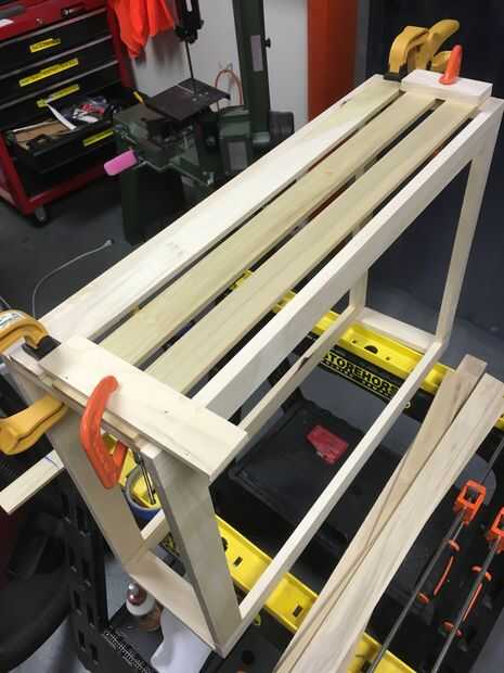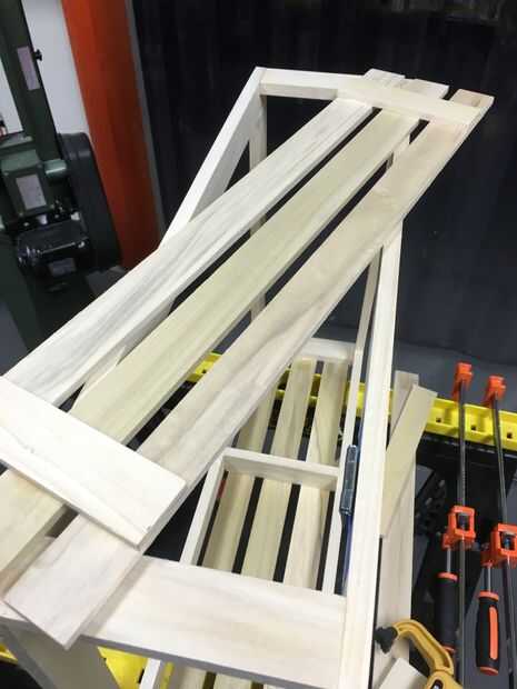 En el lado que no se abre para el estante de cajón, simplemente cortar 3 de lo 0,25 "x 1.5" x 24 "tiras para coincidir con la altura de la caja y pegar en.