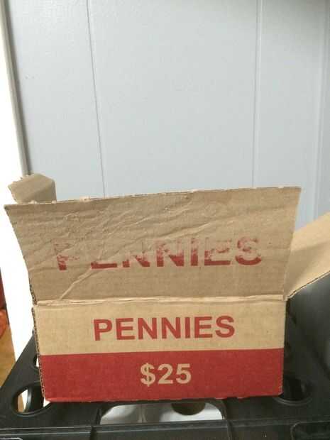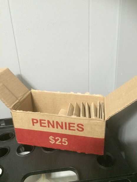 Sencillo localizar una caja de moneda. Mina adquirió del Banco, nos hizo un regalo de la mordaza vale 25 dólares en centavos. Curiosamente, la caja contiene tubos de papel higiénico perfectamente. Arrancó las aletas de la caja, simplemente para facilitar su uso. Simplemente les aplanar y apilar en el cuadro. Una vez que has recogido lo suficiente, puede hacer un montón de macetas de plantas.