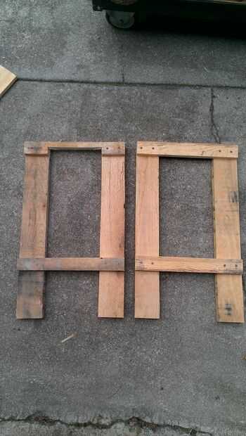 Una vez hayas tomado la plataforma aparte, puede determinar el tamaño que usted será capaz de hacer. Con el tamaño general en mente, empezar a hacer los cortes. Cortar las tablas de corredor a la altura deseada. Entonces yo cortar las tablas superior a la longitud que necesitaba, para un estante superior e inferior. Entonces corté travesaños para fijar las patas juntas. Tenga en cuenta que si vas a hacer un estante oculto, muesca de uno de los mejores tableros para permitir más espacio. Si no, cortar las mismas. Fije las placas de apoyo a las patas con tornillos. Puesto que la madera de palet se cura generalmente hacia fuera muy bien, orificios para ayudar a evitar que se resquebraje.