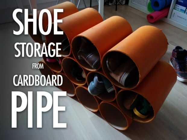 Intentamos experimentar en éste y hecho nuestro almacenaje del zapato propio de tubo de cartón. Estos tubos son formas realmente concretas. Vienen en tamaños de hasta unos 3 pies (1 m) de diámetro y son bastante resistentes. Sin embargo, si se han mojado los zapatos, deje secar por un par de horas antes de ponerlos en este almacenaje del zapato. Como todas nuestras ideas hasta el momento, ésta puede actualizarse con diferente pintura y acabados y todo lo que usted puede encontrar útil.