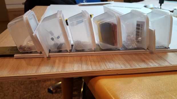 Me preocupa que las cajas se caigan fácilmente, por lo que inclinada ligeramente los estantes (el frente de cada estante es inclinado 1cm más alta que la parte de atrás).