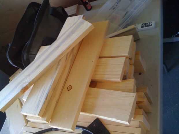 Una vez que habíamos decidido que era hora de empezar subió con un diseño simple que yo podía construir o adquirí un montón de madera recuperada del trabajo que fue atado por el contenedor de basura. El único problema con la madera es está lleno de grapas y hundido contra agujeros. El diseño que fue el más eficiente fue cinco conjuntos de unidades de alto cubo modular de tres niveles. Esto nos permitiría moverse en el futuro y cambiar la habitación sólo quitando y reemplazando unos tornillos.