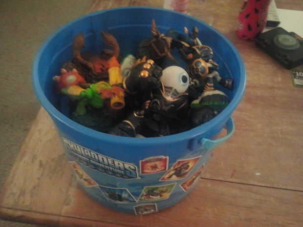 Mi mujer trajo a casa un ingenioso cubo para usar como canastas de Pascua para los niños. Ella pagó $0,99 en Wal-Mart para el cubo. VI esto y pensé que una solución perfecta. El portal de Skylanders vino con pegatinas y cada figura Skylander viene con su propia etiqueta. Me daba miedo el DIY no íbamos muy bien, sabes cómo quisquillosos niños puede conseguir. Él lo ama. Usamos el cubo para la semana Santa hoy y pasó a decorar el cubo de la ciudad. Ahora tiene un dispositivo de almacenamiento rápido y fácil por su portal y figuras. Sólo vierte hacia fuera en el piso. Juega un rato y ahora él puede poner el portal en la parte inferior y rellenar el resto con las figuras.