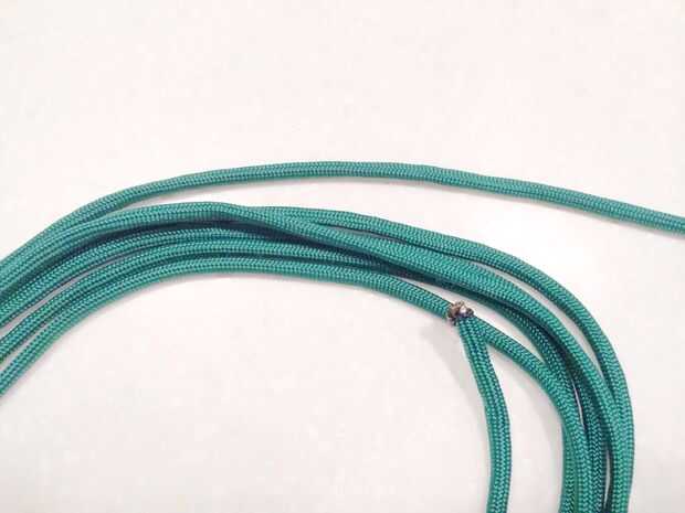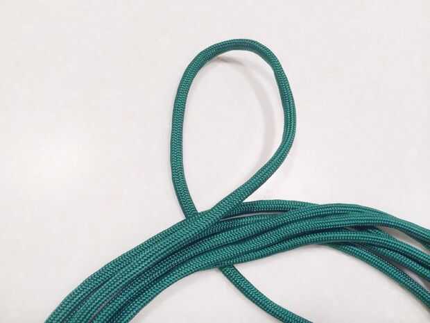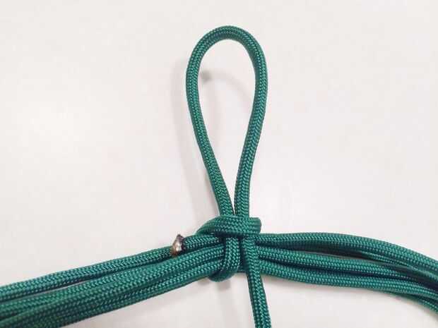 Tome el extremo con la gran mayoría de la cuerda en él y hacer un pequeño lazo en el mismo. Manteniendo el lazo pellizcado, envuelva el exceso alrededor de los 6 lazos una vez y llevarlo a través del lazo. Al traer algunos a través de, no tirar todo el exceso, solo un poco, en otro bucle. Tire el nuevo bucle interior original para apretar el original.