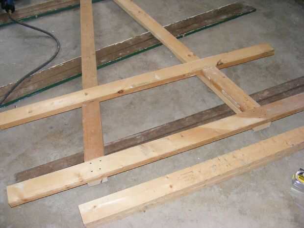 De uñas en la parte superior e inferior cruce los brazos a continuación. Medida de la caída de cada manera para asegurarse de que están centrados, y medida de la tapa hacia abajo en cada lado para asegurarse de que el brazo superior es paralelo al brazo inferior. Usé 4 clavos en cada unión.