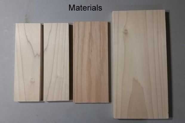 Dos piezas de madera de 11 pulgadas por 3 1/2 pulgadas y 3/4 pulgadas de espesor. También pueden ser algo como el álamo o el pino.
