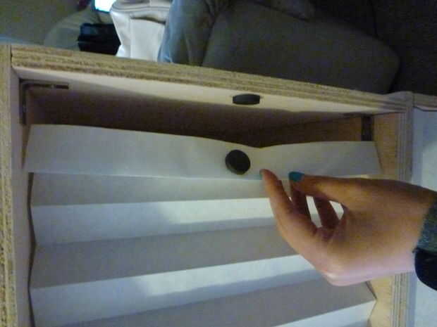 Para mantener la pantalla abierta, puede utilizarse un clip u otro imán. El imán pegado al mismo doblez que está pegado a la caja. Asegúrese de que los imanes son lo suficientemente fuertes como para doblar los pliegues juntos.