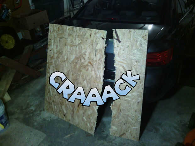 La pieza 'x 4' 4 de 1/4 tablero de la prensa no encajaba en el tronco de Hyundai de mi mujer sin romper una sección primera. Yo sabía que debo han traído la minivan! No importa, he usado la sección rota de todos modos. Sobre $5 para la madera.