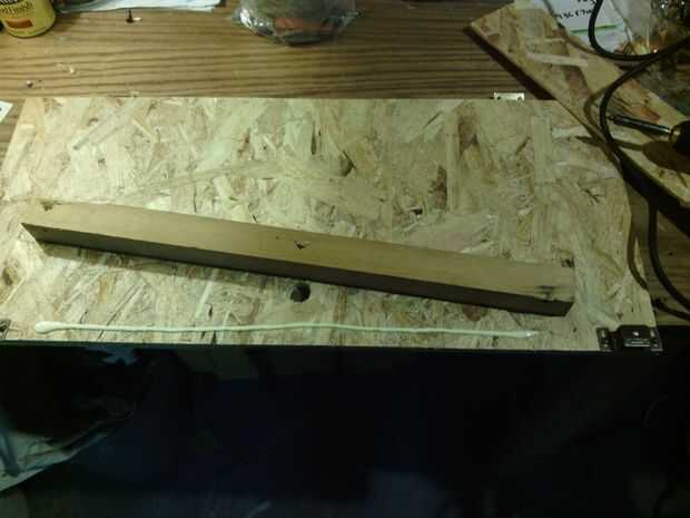 Usando el pedazo roto, medir y cortar un trozo que sostenga mis cosas en su lugar al caer de la tabla. Un pedazo de 2 "x 4" que arrancó a su tamaño, la profundidad del espacio de tabla no es más de 3 pulgadas. Taladré un agujero para que mi dedo de ajuste, por lo que cuando los imanes (HA HA) considerado el estante de bolsillo, mi dedo podría tirar hacia abajo. Más pegado y la espera.