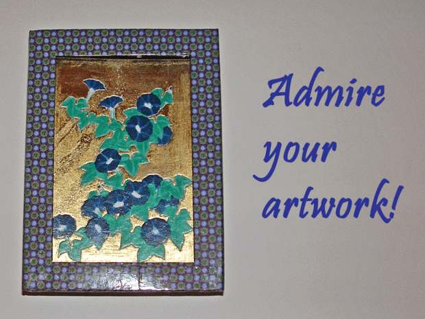 este es un hack muy fácil hacer almacenamiento de pulsera simple y "el secreto". Se verá como un cuadro bonito en su pared, pero contará con almacenamiento adicional. Si ha llegado una de estas cajas de cierre magnético para Navidad o tu cumpleaños o algo, esto es una manera fácil de utilizar para almacenar algunas de sus joyas. Este es un kit de pintura japonesa panel dorado del Museo Metropolitano de arte que compré en una venta después de Navidad. Hay un par de diferentes tipos de kits, no sólo los japoneses la pantalla uno. Lo primero que haces es pintar su cuadro, siguiendo las instrucciones encontradas la caja. (O no. Realmente no tienes que hacer la foto. Estos kits son fáciles de hacer. Usted puede utilizar otra imagen. Una foto de tu perro, tal vez. Que llevaba un sombrero tonto. Esa foto de tu hermana que ella odia, pero encuentras secretamente hilarante. Elijas lo que elijas. Es abierto). Paso atrás y admirar su arte. (O la imagen de su hermana. Bueno, tal vez no admirar. Ríen, posiblemente.) Encontrar algunas pequeñas colgadas de ganchos que le atraigan. He encontrado éstas de "Comando" que color coordinado. Para las instrucciones, dice que frotar alcohol en su superficie para asegurar una buena adherencia, pero no frote alcohol sobre mi superficie porque era papel, y no creo que era sabio. Entonces se dice que poner la pegatina en la pared primero y luego aplicar el gancho, pero pongo la pegatina pequeña mi gancho primero en vez de en la caja, porque pensé que podría funcionar mejor. Por lo tanto, lo que usted quiere hacer. :) Esperé la cantidad apropiada de tiempo y Voila! Un lugar agradable para colgar tus pulseras. Usted podría también poner otras cosas aquí en su lugar, como una pequeña caja para cartas de amor secreto, un buzón de notas secretos, un escondite secreto de chocolate, nada secreto, realmente. Bonificación extra, el bolsillo que la imagen es bastante grande, así que puede usar para almacenar algo así. Tal vez un extra 20$ por dinero. ¡Que te diviertas!