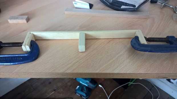 Después de feliz con mi diseño decidí usar algunos bordes de madera gruesa de 6mm para construirla. I cortar a la longitud, lija los bordes suave y aplica una aplicación uniforme del pegamento de impacto a todas las superficies que se casaron juntos. Permitió el pegamento absorba la madera a secar durante 10-15 minutos y luego aplicar una cantidad más abundante de adhesivo antes de cada sección firmemente juntos oprimida durante unos 3 minutos. Entonces dejé el marco de la miniatura al completamente seco 24 horas antes de lijar todas las imperfecciones suave. Una vez que el marco era seco y sólido, lija la base de para quitar los bordes redondeados y aumentar la superficie de contacto. Pegué el marco en el lugar de la misma manera pegan todos juntos - luego aplicar el pegamento, dejarlo en remojo y parcialmente establecido, aplicar más pegamento y presionar firmemente las superficies juntas mientras el pegamento seca. Después de todo esto dejó para otras 24 horas y luego fue sobre la coloración y tratarla para poder mimetizarse con el resto de la mesa.