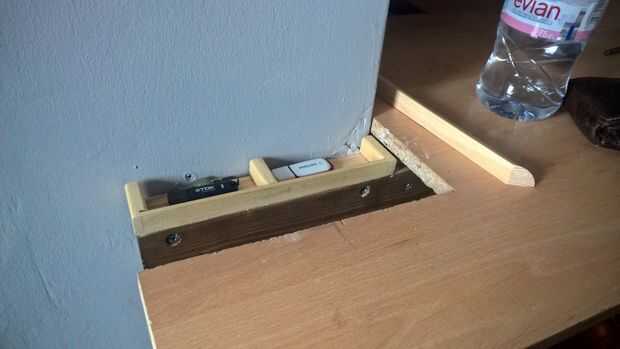 Después de todo el esfuerzo para ocultar el cursor, me di cuenta de que en un extremo de la mesa había una pequeña cavidad; la cavidad dio una clara visión de los reguladores de un ángulo de visión particular - muy improbable. ¿Sin embargo, esto todavía derrotó el propósito de ejecutar cornisa a lo largo de la parte inferior del escritorio, así que tuve que encontrar una manera 1) ocultar la cavidad de la vista y 2) utilizar la pequeña cantidad de espacio - podría usar para algo en lugar de dejarlo ir a la derecha de residuos?