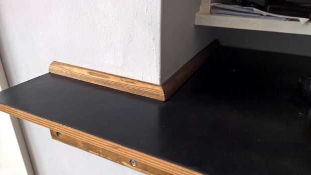 Para que las secciones desktop poder deslizar, deben haber un muy pequeño espacio entre la encimera y la pared para evitar el contacto friccional. Esta brecha, en mi opinión, hace que el escritorio como si no bastante cabe la alcoba correctamente, reduciendo su atractivo estético. Colocar algún tipo de cornisa al hace pared el aspecto de escritorio perfectamente equipado y por lo tanto hace que se vea como si han hecho profesionalmente - grandemente realzar su atractivo.