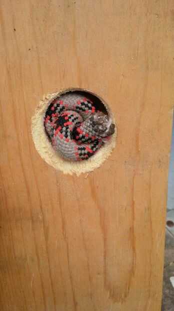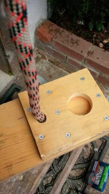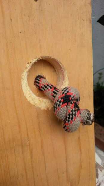 Ató un nudo en la cuerda y tiró de él firmemente en el hueco hecho por el agujero vio, para que la madera se sentaba sobre el piso.