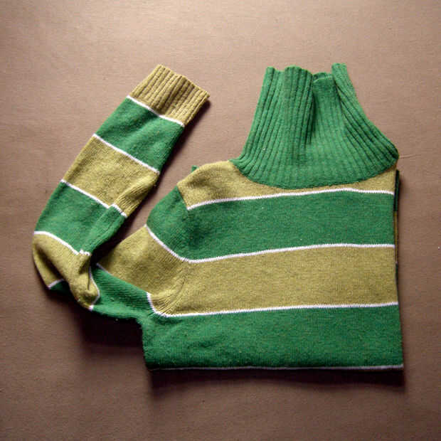 Para el sombrero de elfo puede que desee encontrar un suéter con un cuello, haciéndola doblar muy bien como un sombrero, pero no es necesario. Siempre puede ajustar su costura para el material, que suéteres proporcionan un montón de. También podría empezar en la parte inferior del suéter para un borde acabado más amplio si no tienes un suéter con un cuello. Hice la mayor bola de pelusa que se adjunta a la punta de hilo blanco.