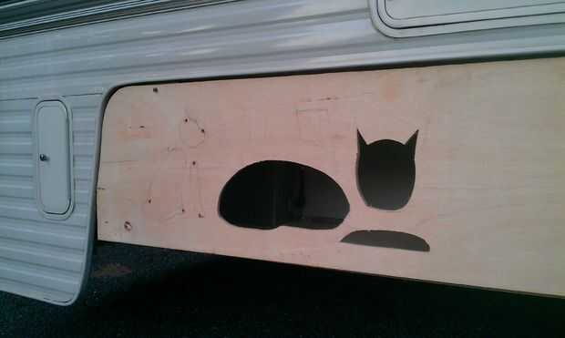 - Recortar un cuadrado grande en la madera contrachapada para la pantalla significa que toda la zona de la Plaza no apoyará el trailer cuando el catio se dobla para arriba.